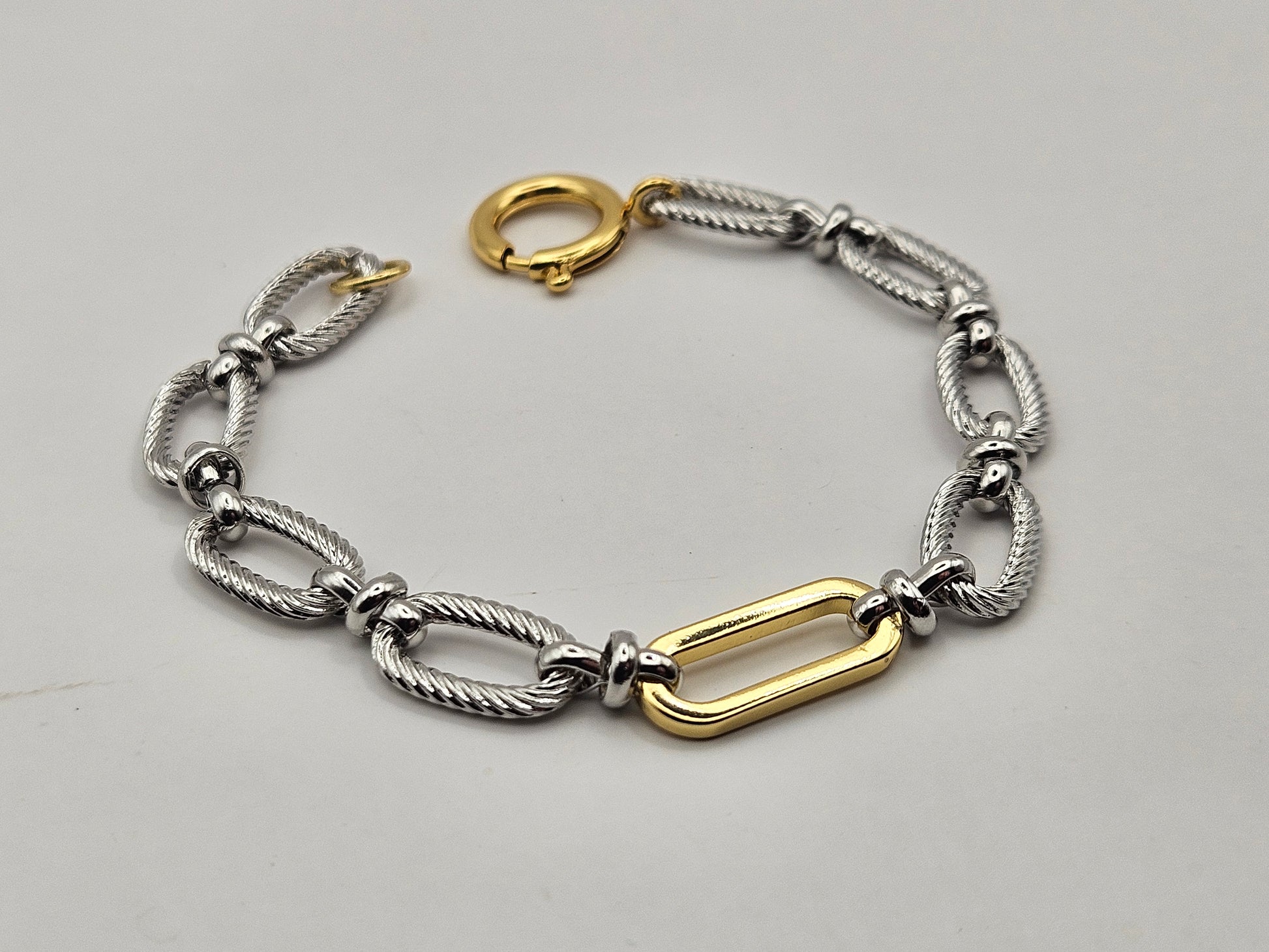 14k Gold Filled Large Link Mixed Metal Bracelet