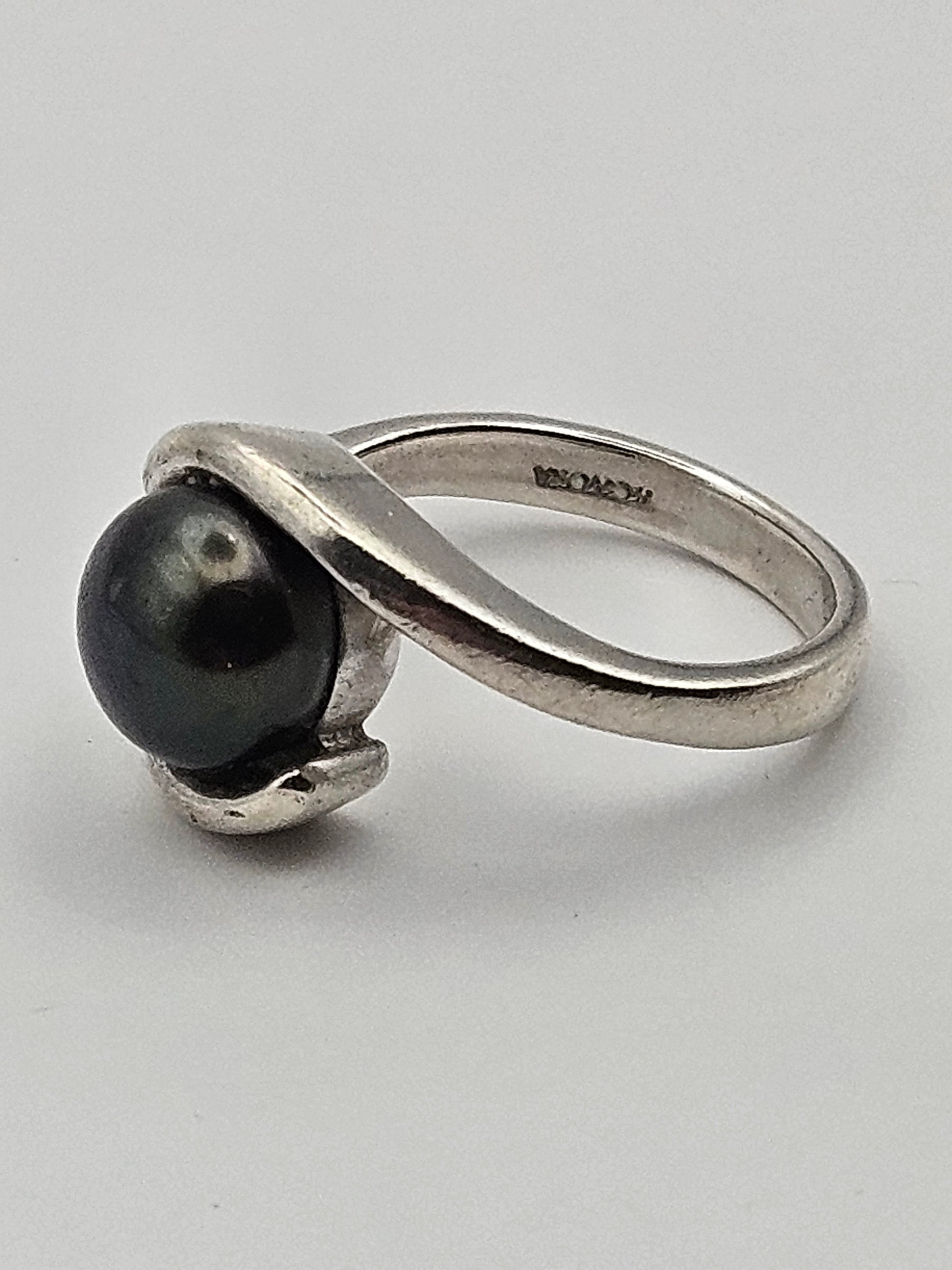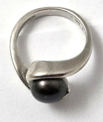 Vintage 60's Cultured Black Pearl Sterling Silver Ring