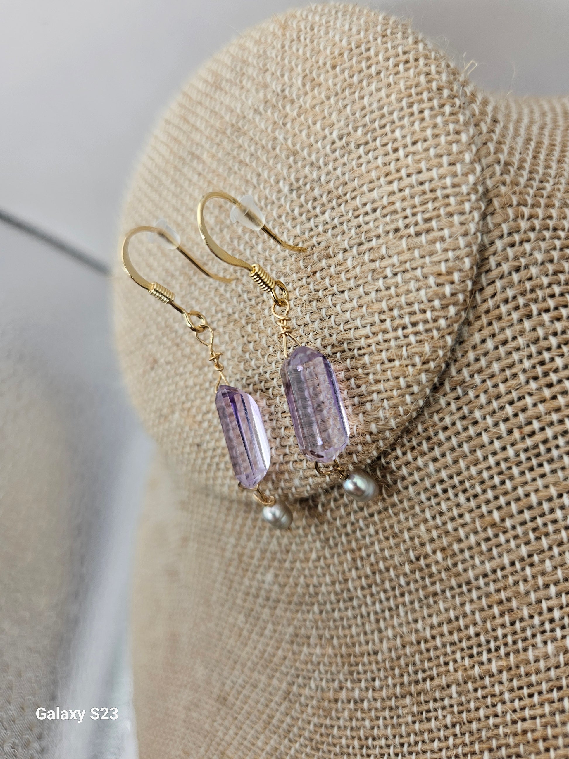 Amethyst & Freshwater Rice Pearl Drop Earrings (14kGF)
