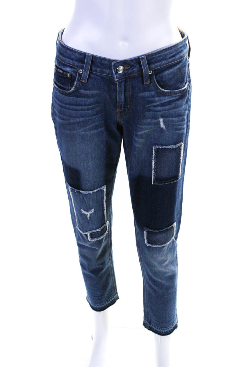 Derek Lam 10 Crosby Mila Mid-Rise Patchwork Girlfriend Jean Blue 32" Waist (EUC)