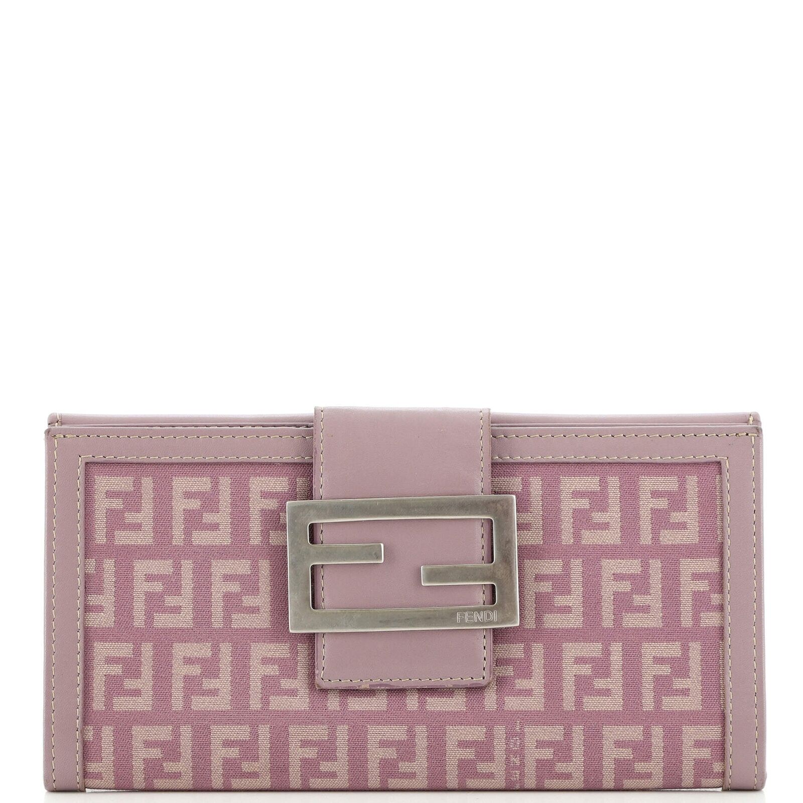 Fendi Vintage FF Zucchino Canvas Long (EUC) Wallet (Crossbody/WOC) Lilac/Purple-Beige