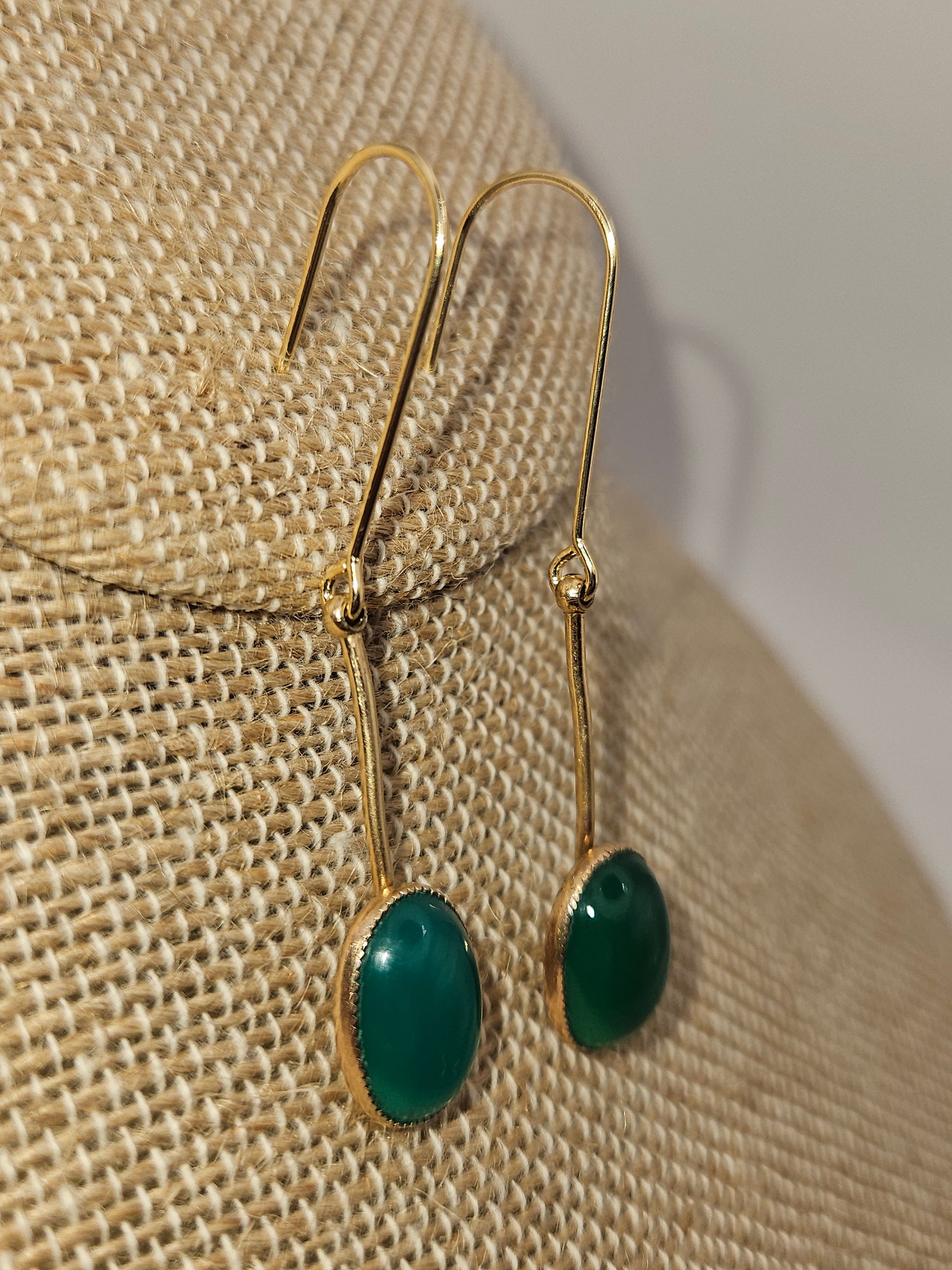 Green Chalcedony earrings from 1950's, an estate find originally with screw backs, have been repurposed, reworked to create these 14k gold filled dangle earrings for pierced ears.