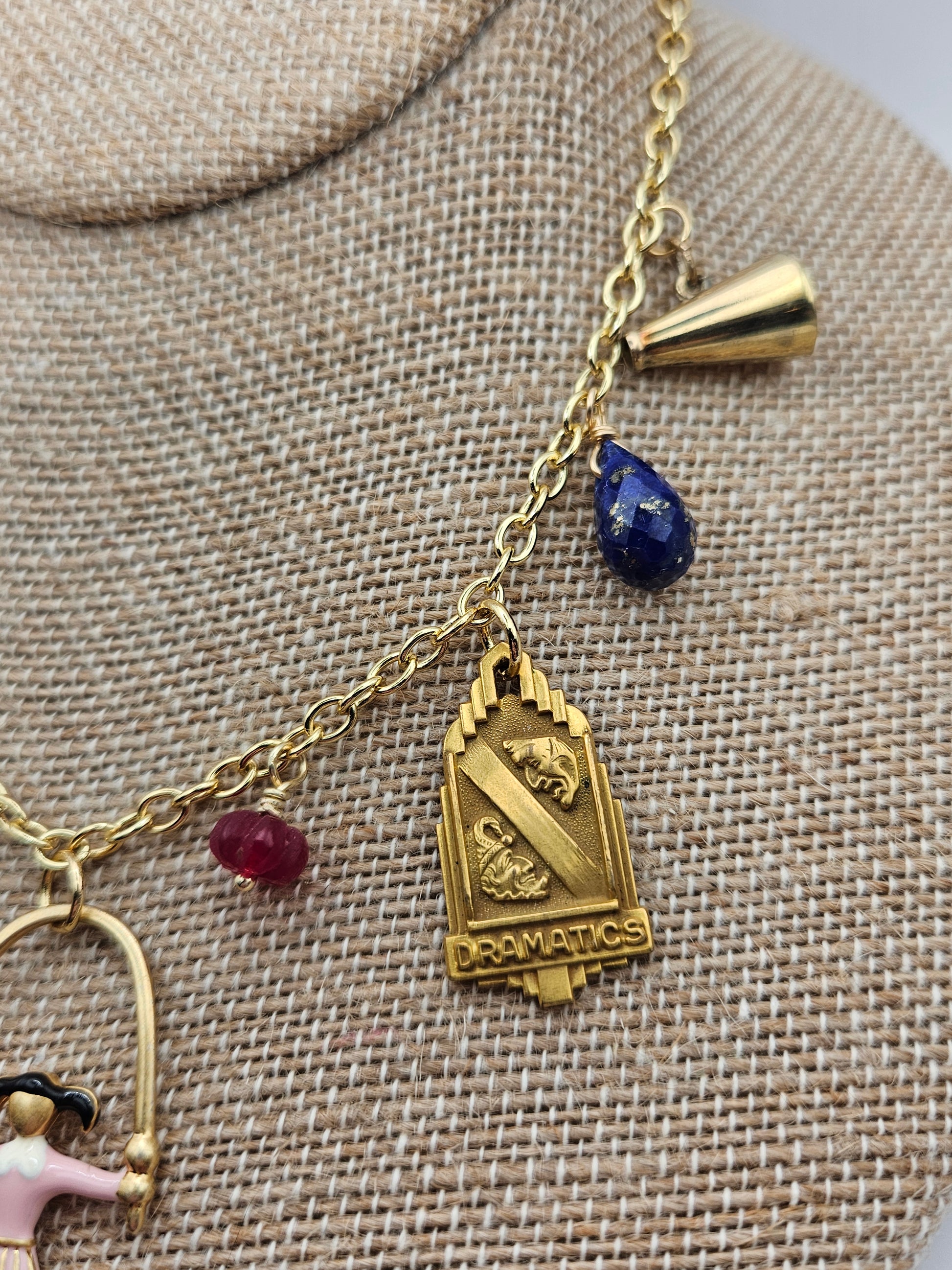 "Let's Play" Vintage Repurposed Charms & Gemstones Chain Necklace