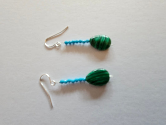 Faceted Turquoise & Malachite Smooth Pear Drop Earrings (Sterling or 14kGF)