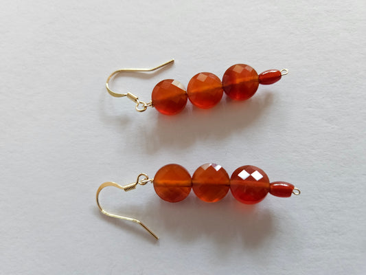 Carnelian Faceted Coin Shaped & Rice Shaped Bead Drop Earrings (14kGF)
