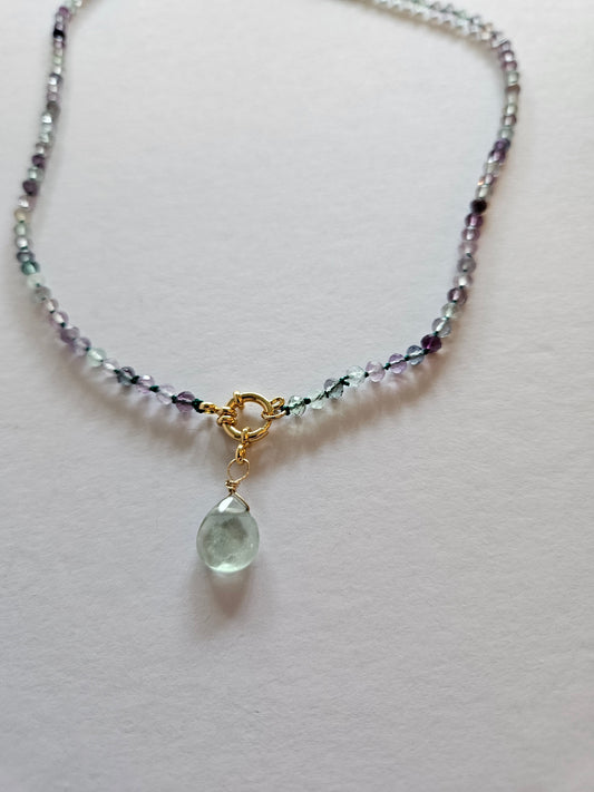 Fluorite Faceted Bead 3-Way Necklace with Removeable Briolette Charm