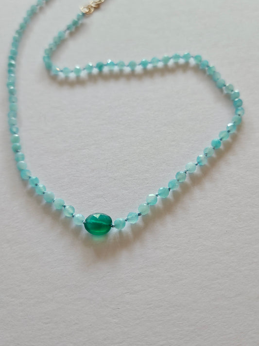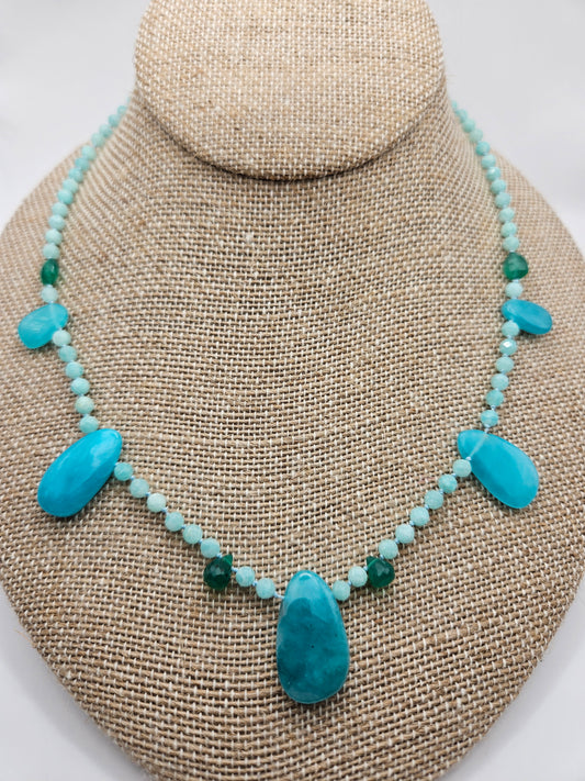 Genuine Amazonite & Natural Emerald with 14k GF Statement Necklace