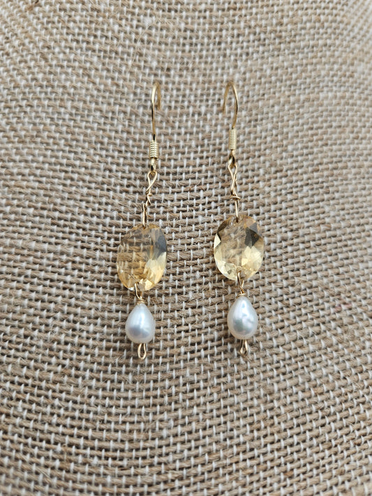 Citrine & Freshwater Rice Pearl Drop Earrings (14kGF)