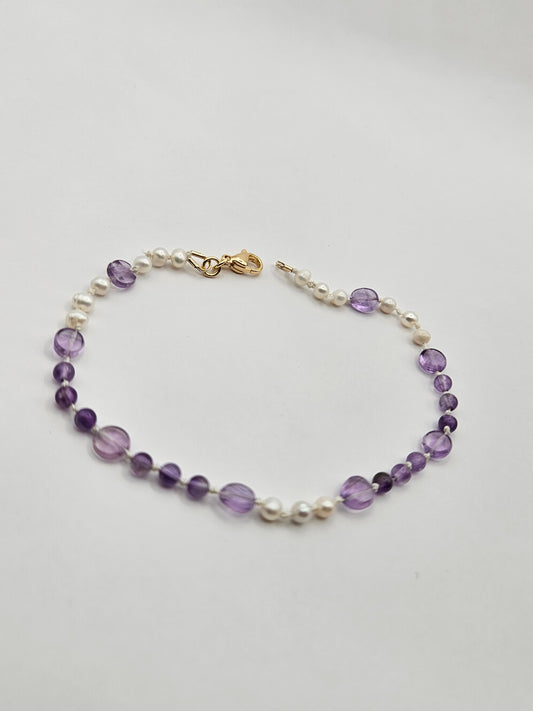 Genuine Amethyst & Freshwater Pearl 14k GF Bracelet