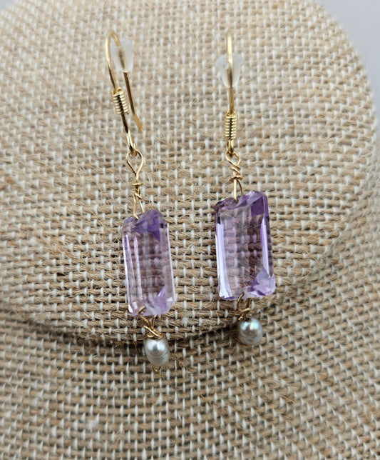 Amethyst & Freshwater Rice Pearl Drop Earrings (14kGF)