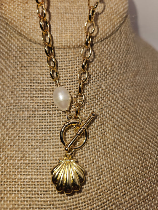 14kgf Shell Locket with Freshwater Baroque Pearl Bracelet