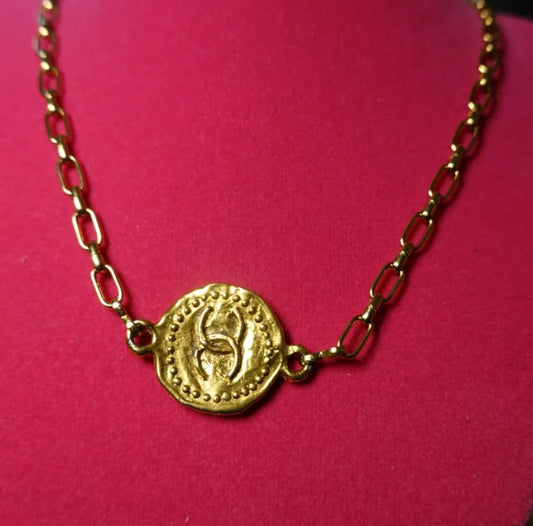 Chanel CC "Coin" Pendant Link on Gold Plated Chunky Paperclip Chain Necklace