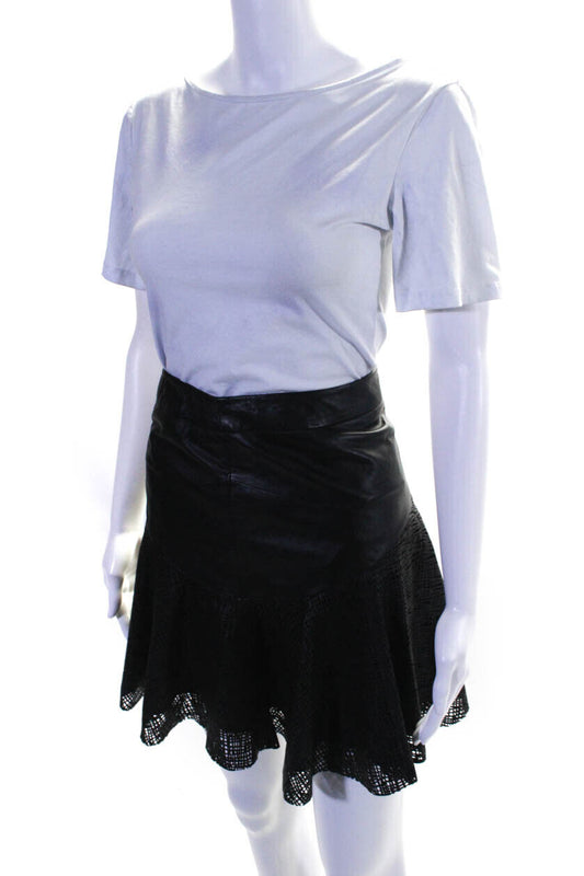 Derek Lam 10 Crosby Perforated Leather A-Line Skirt Black Size 12