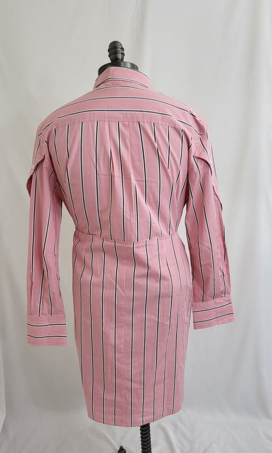 Derek Lam 10 Crosby Charlotte Tie Waist Shirt Dress Pink Black Stripe Size 16 (EUC)